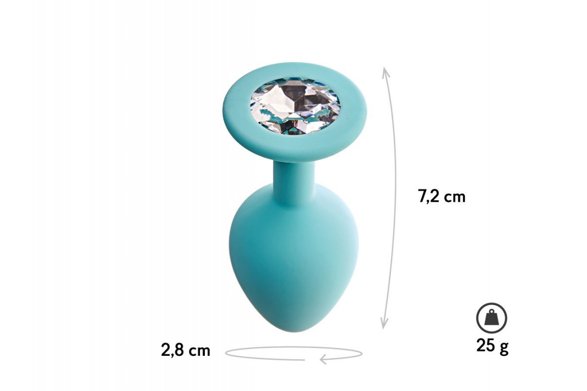 Аквамариновая анальная пробка с прозрачным кристаллом Gamma S - 7,2 см.
