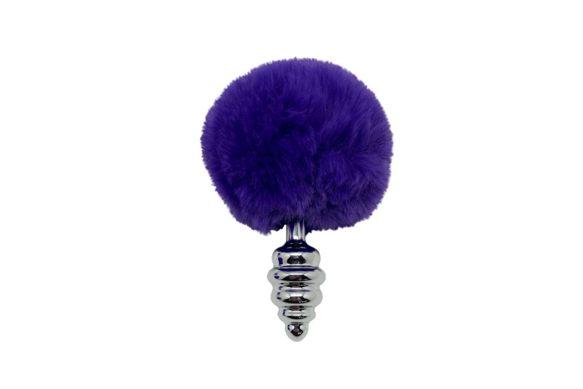 Анальная пробка Metal Anal Fluffly Twist Plug S с фиолетовым хвостиком