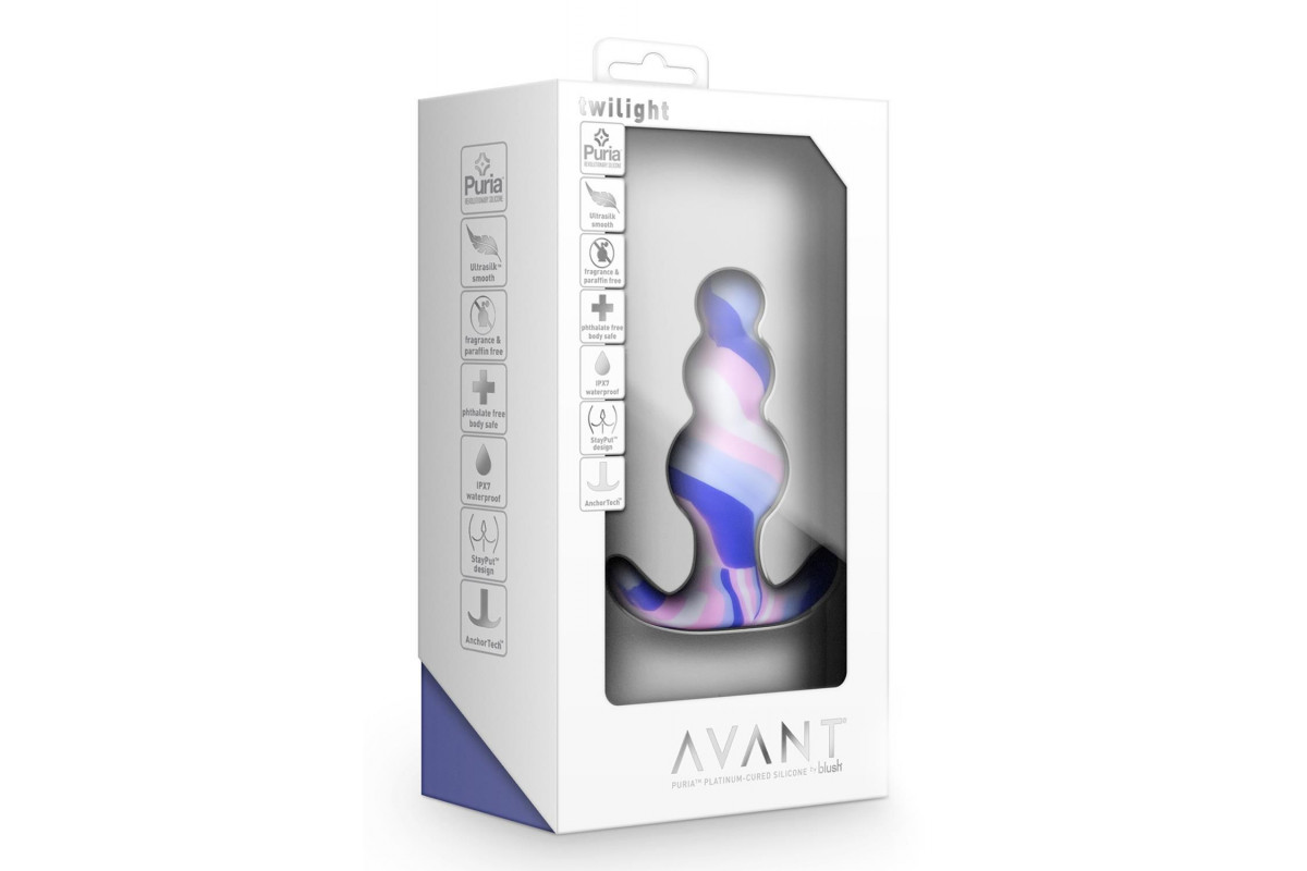 Анальная пробка с цветными разводами Twilight. Имеет форму якоря, подходит для ношения.
