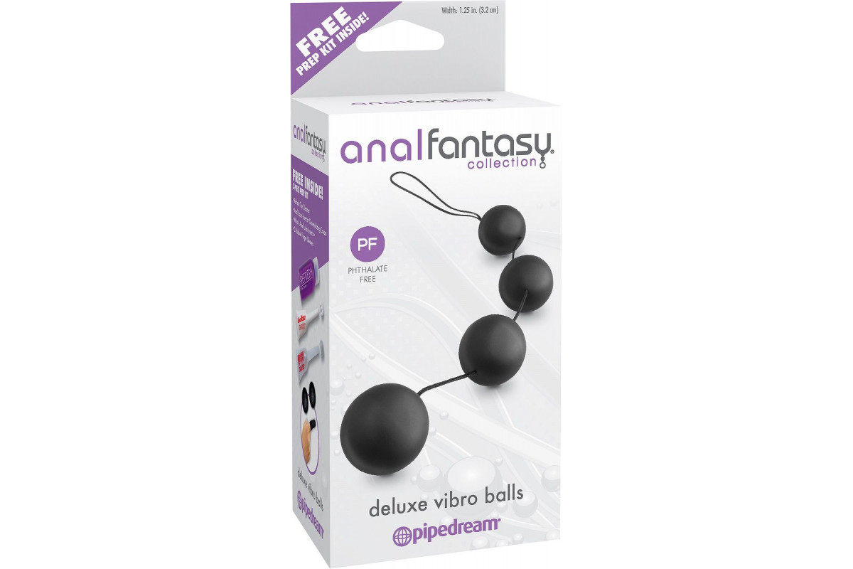 Анальные шарики Deluxe Vibro – шарики для анальной стимуляции с эффектом вибрации, вибрация происходят за счет более тяжелого маленького шарика в большем. Шарики имеют гладкую поверхность. При помощи прочного шнурка массажер можно легко извлечь.