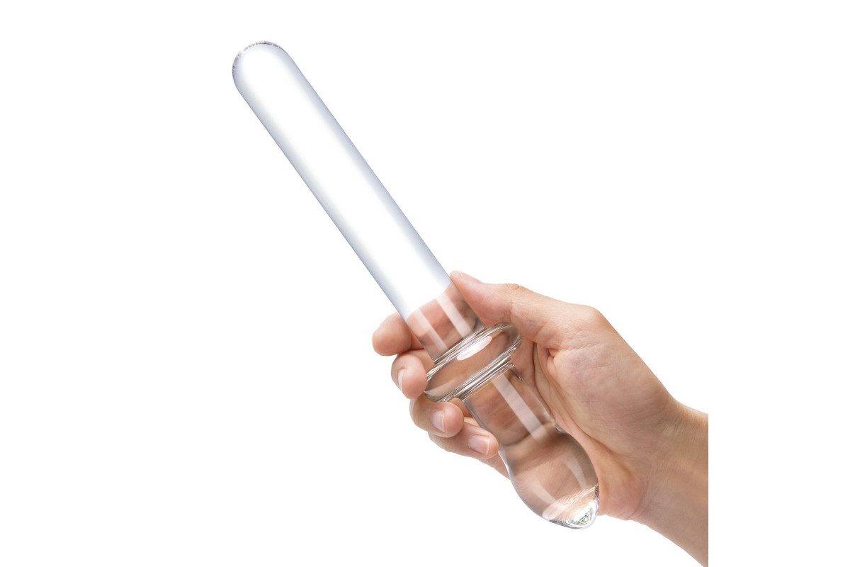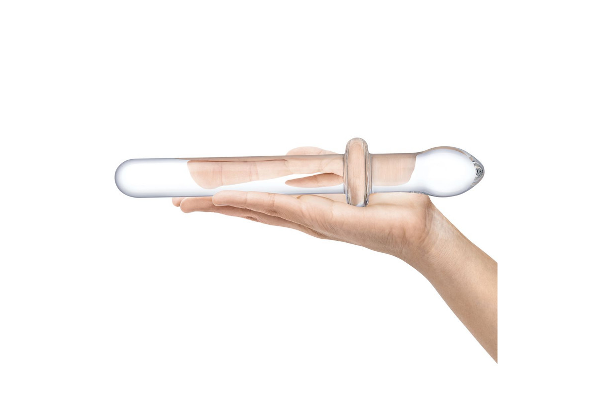 Удвойте свое удовольствие с этим двусторонним фаллоимитатором из стекла. Стимулируйте себя или партнера изнутри благодаря гладкой вагинальной части или анальной. Посередине ограничительное основание, диаметром 4,6 см, а заостренные гладкие головки с двух сторон позволяют легко вводить игрушку любым из концов. Плоское центральное основание обеспечивает безопасность использования. Длина фаллической части - 14,5 см, диаметр - 2,5 см.
