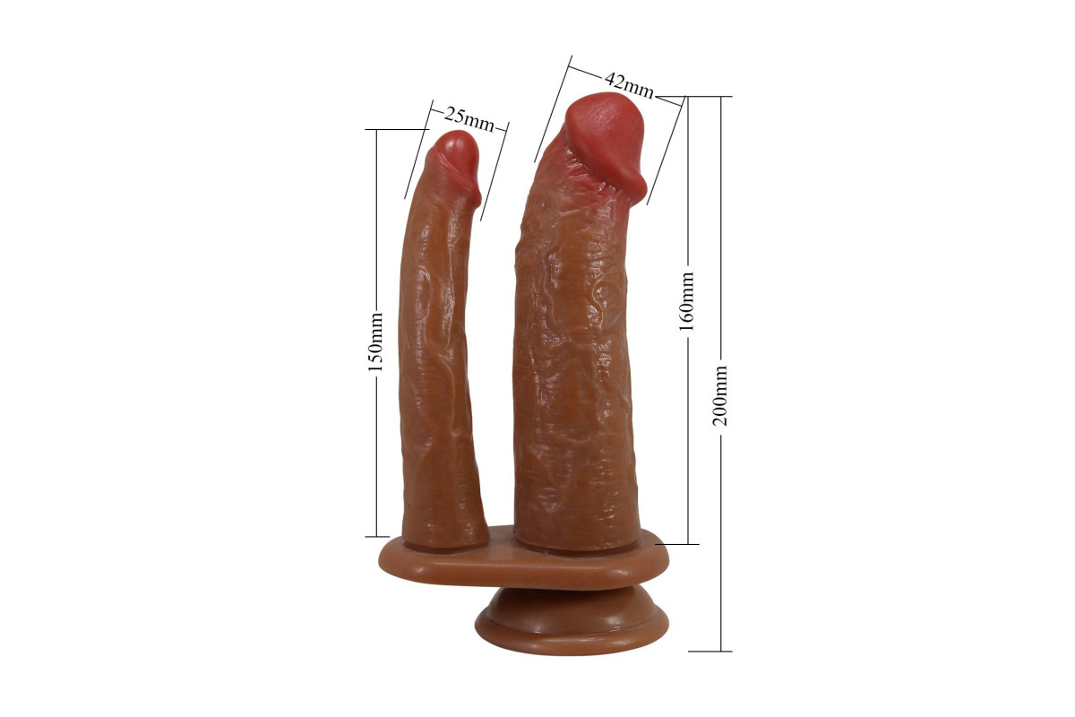 Двойной вибратор из TPE с 7 режимами вибрации. Один ствол длинный, другой — толстый, оба с реалистичными головками. Заряжается через USB. Водонепроницаемый, рекомендуется использовать с лубрикантом. Рабочая длина вагинального отростка - 16 см, диаметр - 4,2 см. Рабочая длина анального отростка - 15 см, диаметр - 2,5 см.