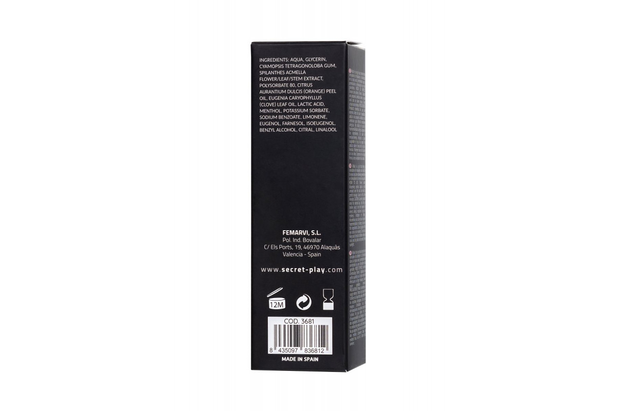 - Состав: вода, глицерин, камедь Cyamopsis Tetragonoloba, экстракт цветов / листьев / стеблей Spilanthes Acmella, полисорбат 80, масло кожуры цитрусовых Aurantium Dulcis (апельсин), листья Eugenia Caryophyllus (гвоздики) Масло, молочная кислота, ментол, сорбат калия, бензоат натрия, лимонен, эвгенол, фарнезол, изоэвгенол, бензиловый спирт, цитраль, линалоол.