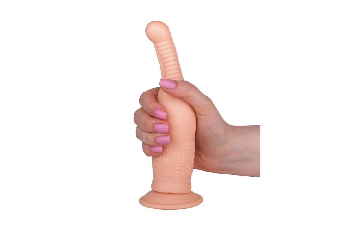 Несколько уровней ширины помогают разнообразить ощущения, а присоска крепко фиксирует игрушку на любую ровную поверхность. Рабочая длина - 17,5 см.