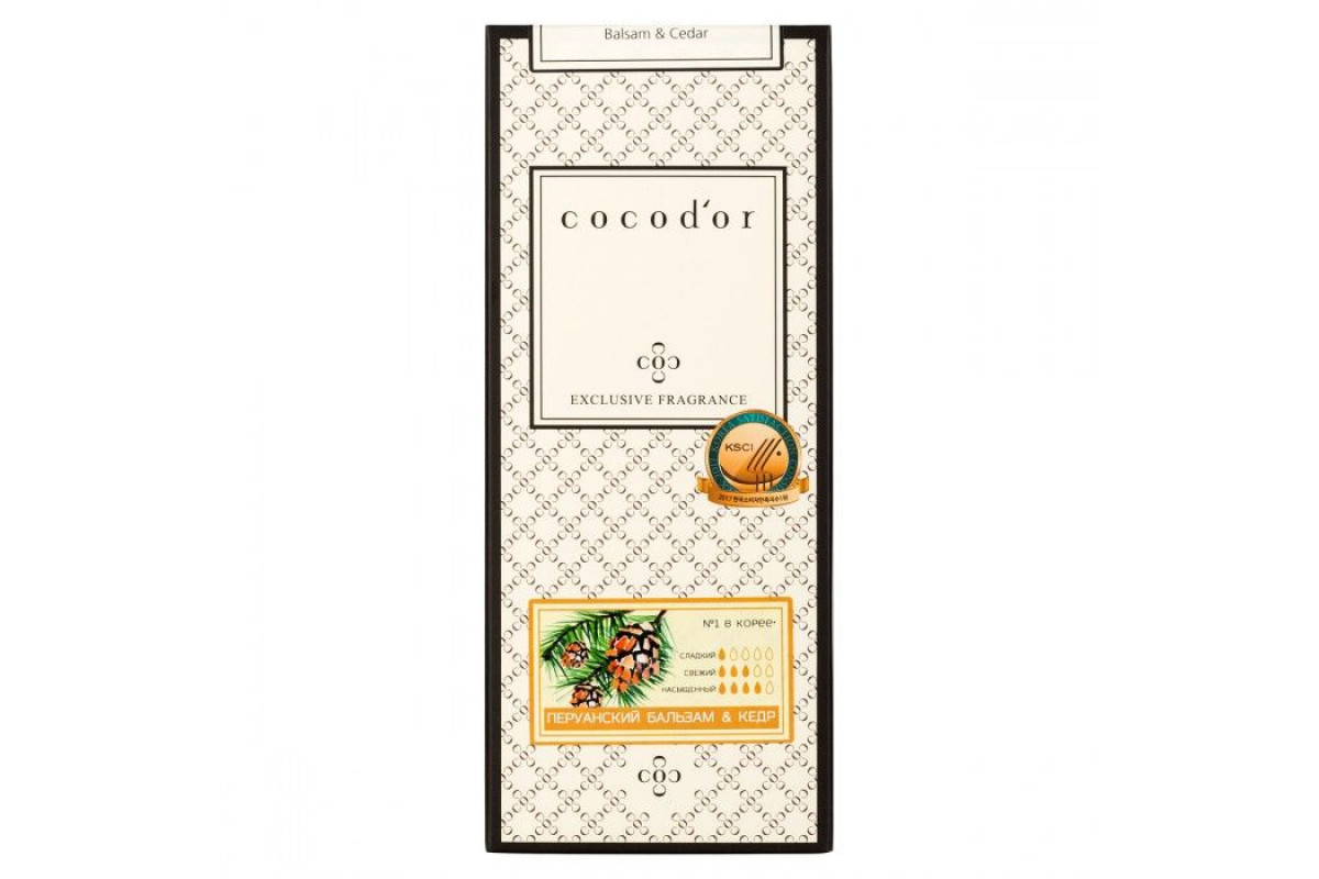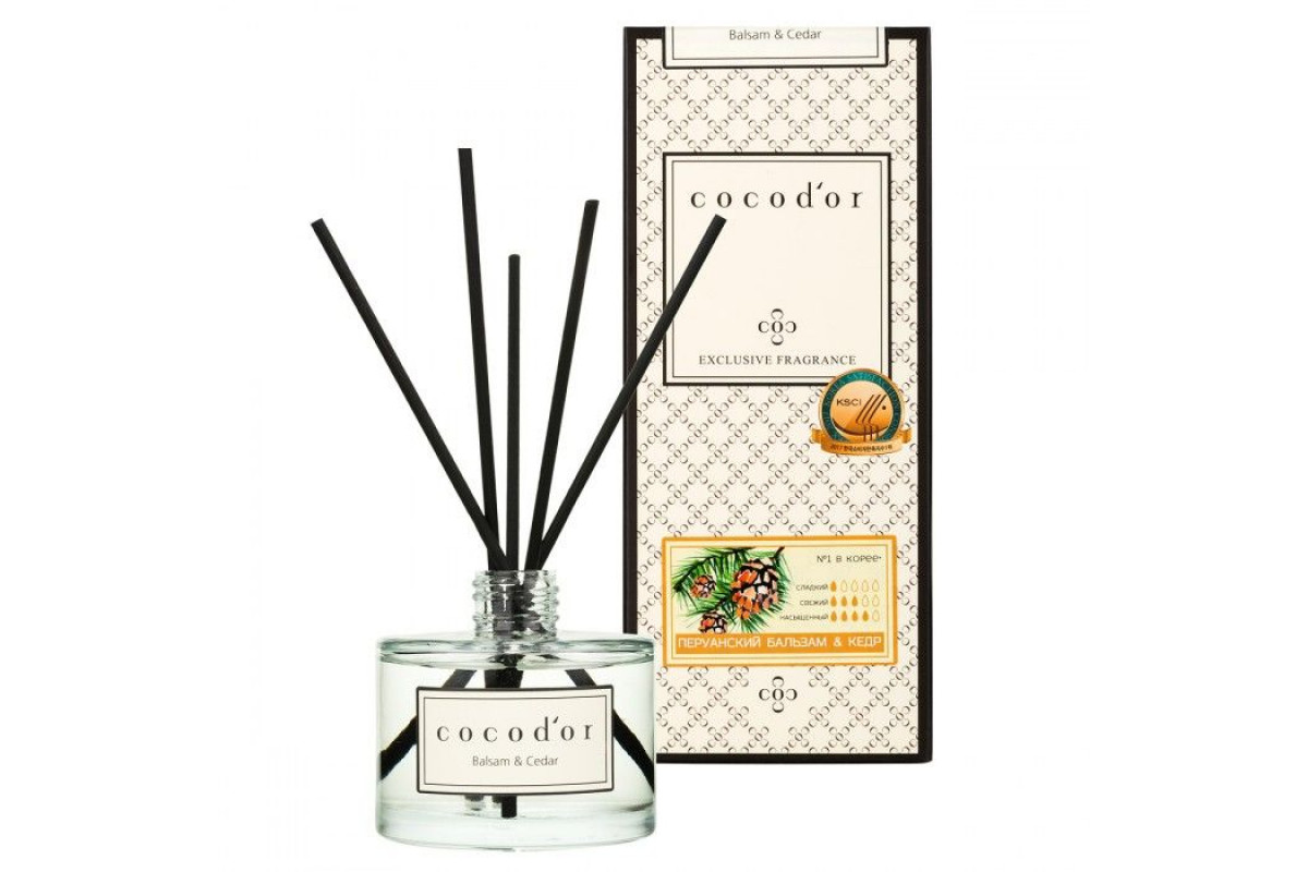 Сочетание ароматов величественного кедра и перуанского бальзама создает атмосферу роскоши, успеха и сосредоточенности, перенося Вас в центр многовекового хвойного леса. Высокая и благородная парфюмерная композиция, как в лучших бутиках Лондона. Арома-диффузор Cocod`or наполнит дом или офис многогранными парфюмерными композициями, оживляя атмосферу вокруг. Выбирайте ароматы, подходящие под Ваш характер или настроение. Флакон из прозрачного стекла с станет стильным дополнением интерьера. Черные палочки изготовлены из специальной пористой микрофибры – аромат будет распространяться равномерно и экономично. Срок действия арома-диффузора Cocod`or до трех месяцев. Абсолютно безвреден для Вас и Ваших близких. Не содержат спирт.