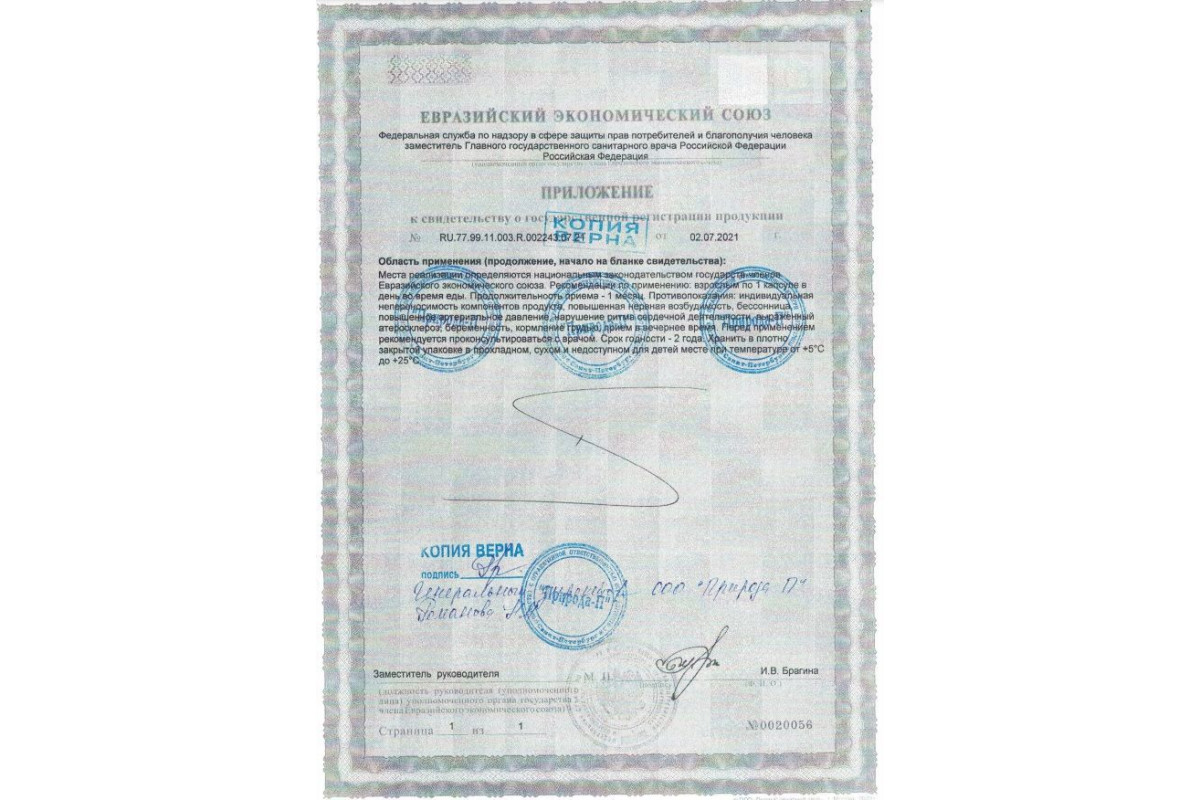 Рекомендуется принимать по одной капсуле в день, запивая достаточным количеством воды. Для достижения лучших результатов используйте в течение курса, соблюдая рекомендации специалиста.