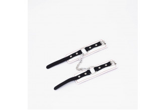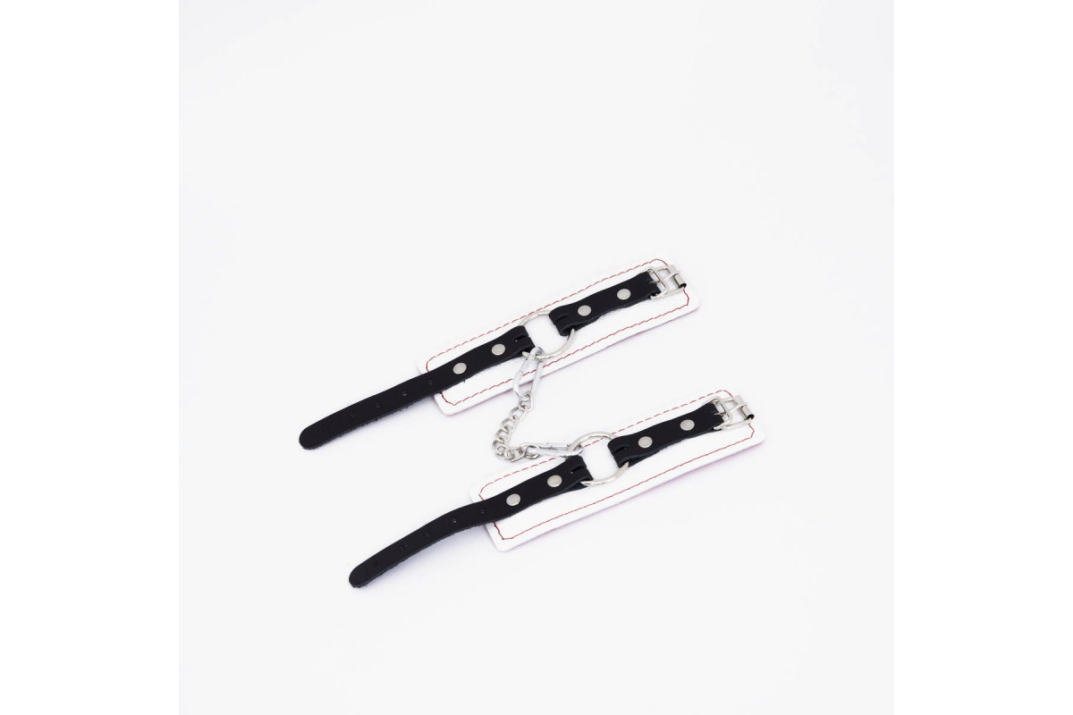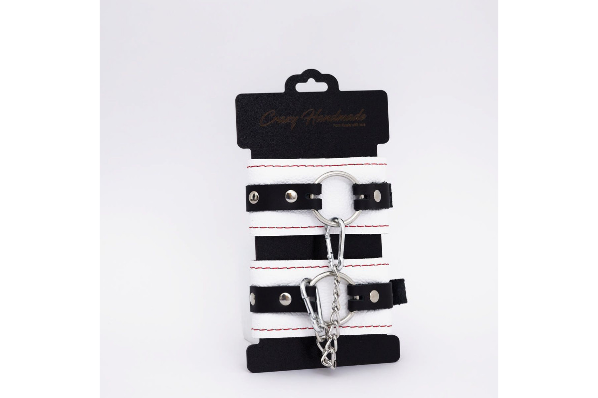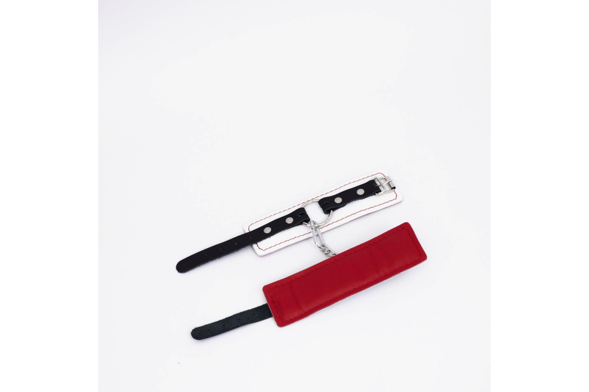 Бело-красные кожаные наручники — стильное и элегантное дополнение для взрослых игр