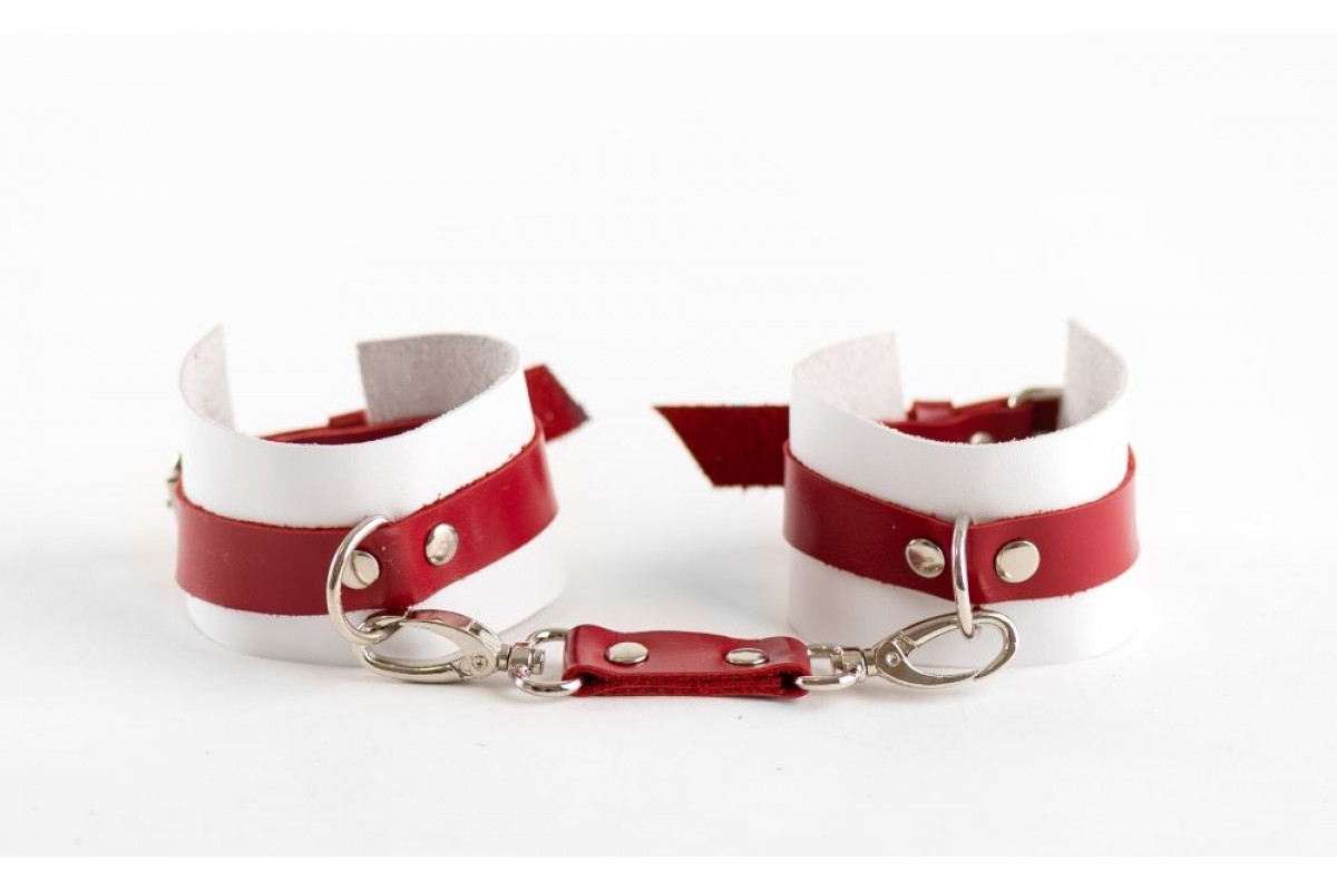 Бело-красные наручники из натуральной кожи — стильное и элегантное решение для взрослых