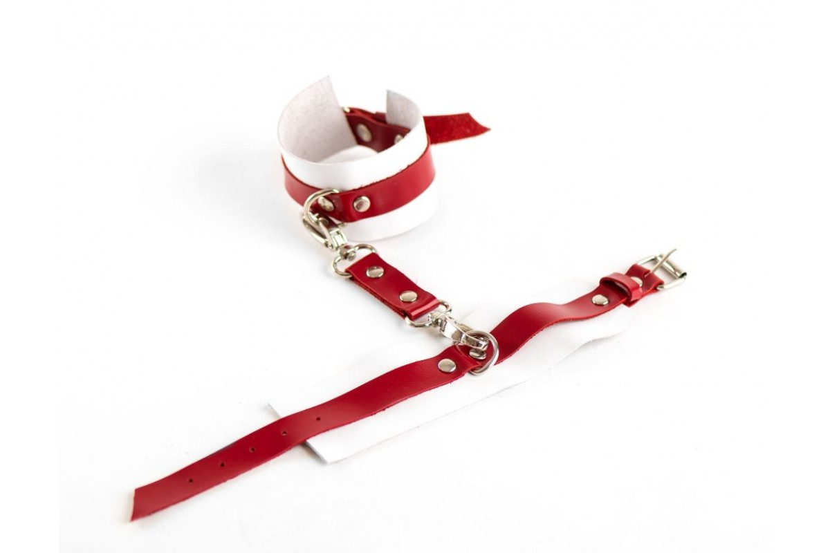 Бело-красные оковы из натуральной кожи — элегантное и чувственное украшение для взрослых
