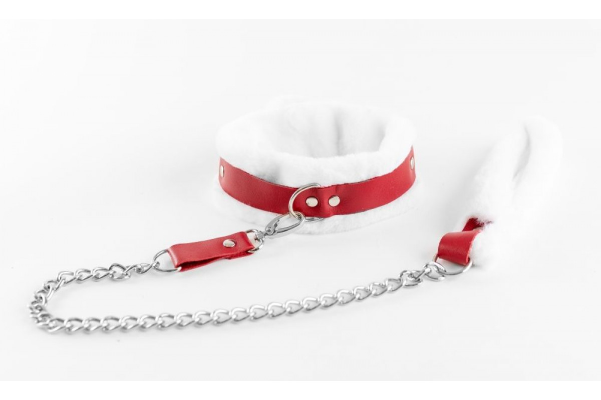 Бело-красный ошейник из натуральной кожи с нежным мехом — идеальный аксессуар для взрослых