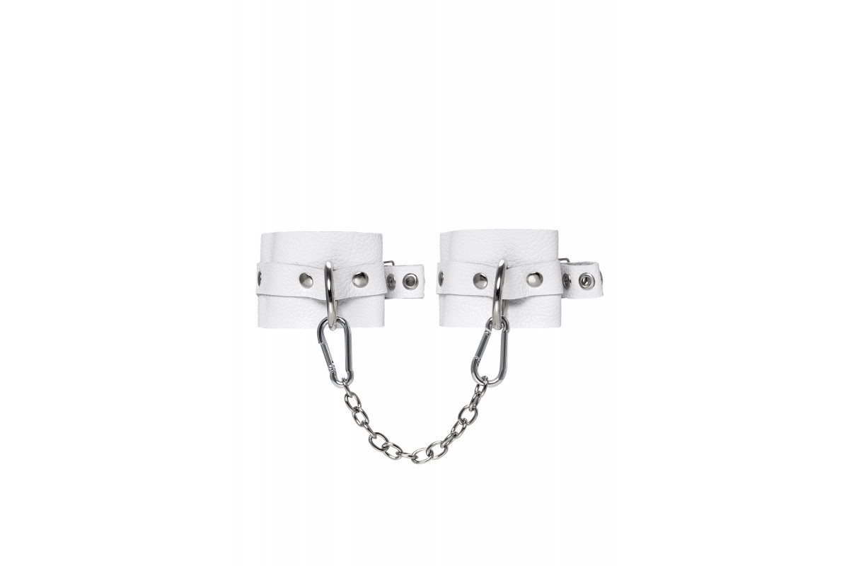 Белые мягкие кожаные оковы с люверсами — элегантное сочетание стиля и функциональности