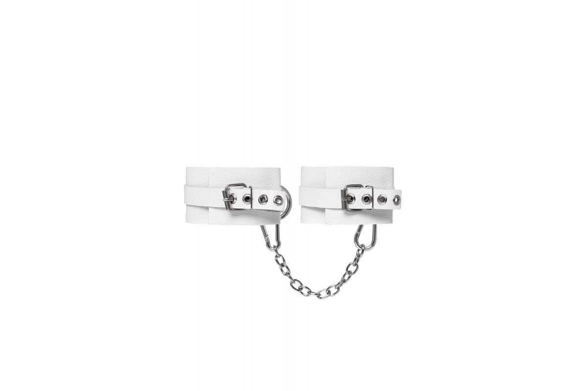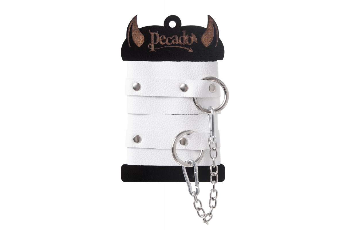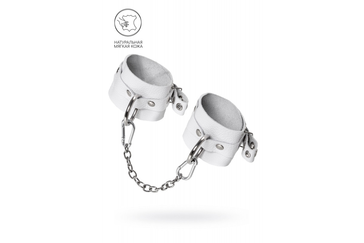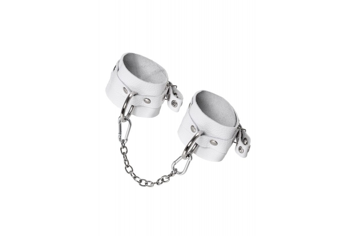 Самый мягкие оковы из всей линейки российского производителя Pecado. Сексуальный атрибут изготовлен из безопасной и натуральной кожи. Насыщенно белый цвет и терпкий аромат материала повышают градус возбуждения в процессе ролевых игр. Манжеты и ремешки девайся очень тактильно приятные. Они не мнутся, не тянутся и обладают повышенной износостойкостью. Вся фурнитура высокого качества. На тонких ремешках имеются отверстия с люверсами, для подбора нужного обхвата. Благодаря стальной застежке аксессуар легко застегивается и расстегивается. Между собой оковы присоединяются с помощью карабинов и короткой цепочки. Длина манжет – 25 см, ширина - 5,5 см.