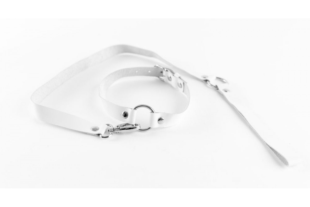 Добавьте этот уникальный аксессуар в свою коллекцию и откройте новые грани удовольствия и страсти. Белый чокер из натуральной кожи с поводком — ваш надежный спутник в мире интимных экспериментов.