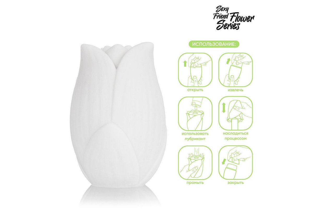 Белый нереалистичный мастурбатор в форме бутона цветка Lotus
