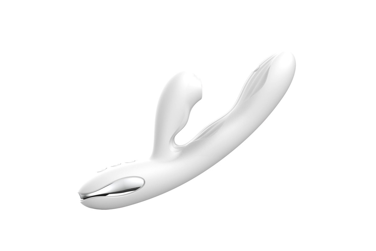 Белый вибратор-кролик Eria с вакуумной стимуляцией, функцией tapping и нагревом - 21,5 см.