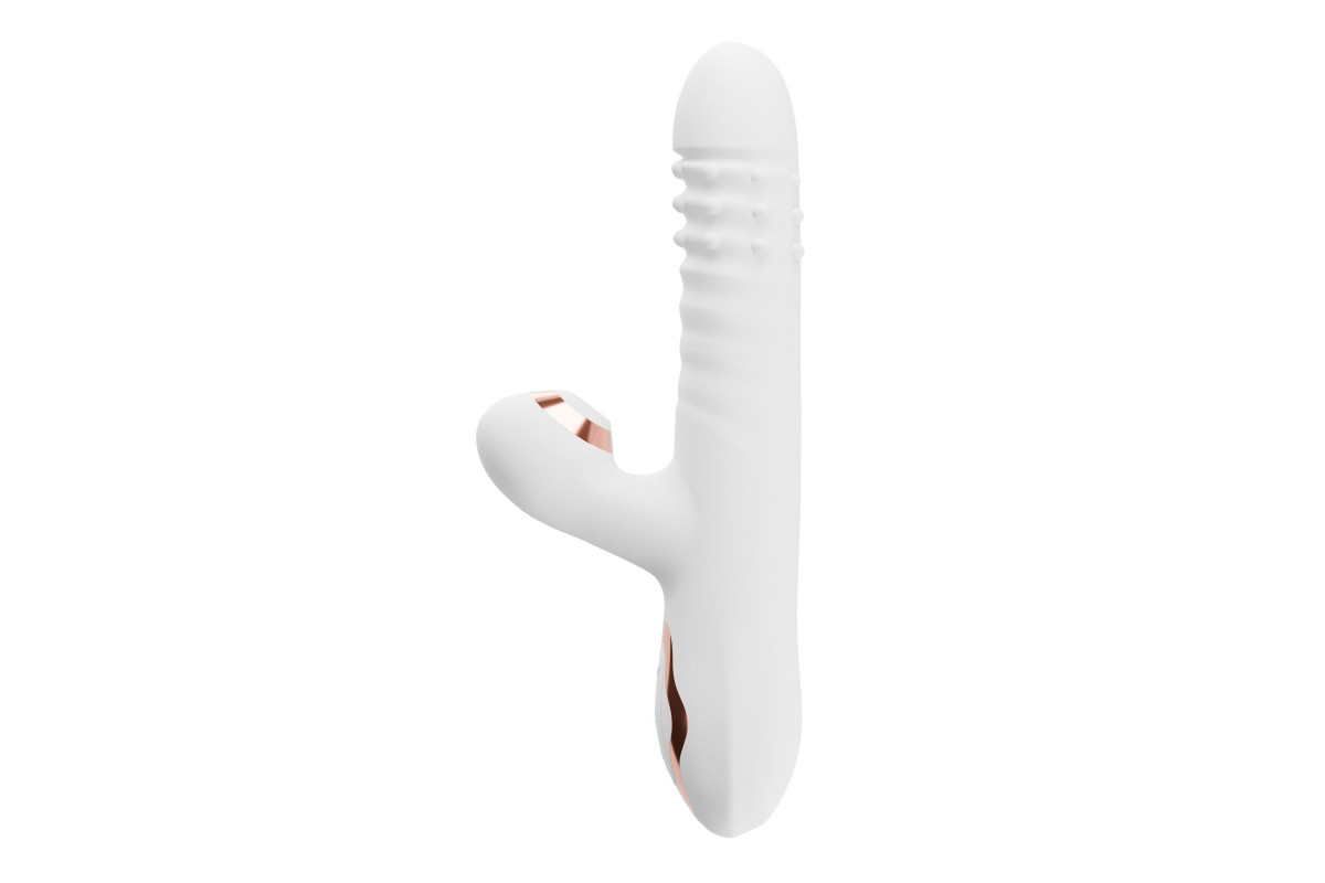 Белый вибратор-кролик с вращающимися шариками и вакуумной стимуляцией