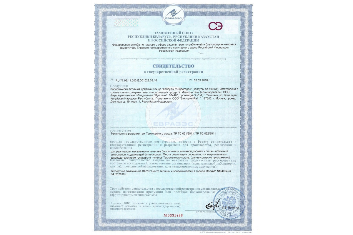 Номер свидетельства RU.77.99.11.003.Е.001029.03.16 от 03.03.2016 г.