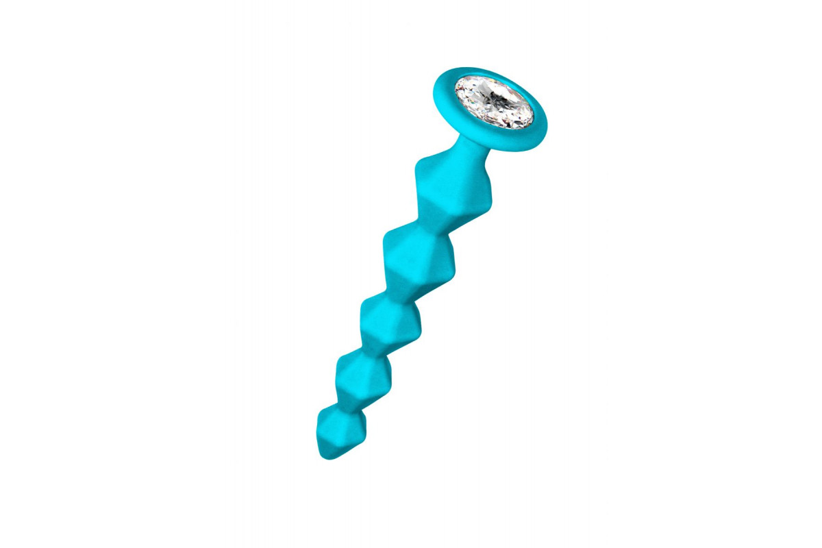 Бирюзовая анальная цепочка с кристаллом Buddy - 17,7 см.