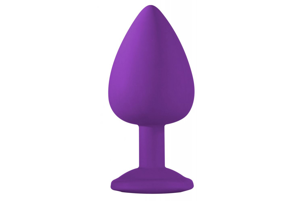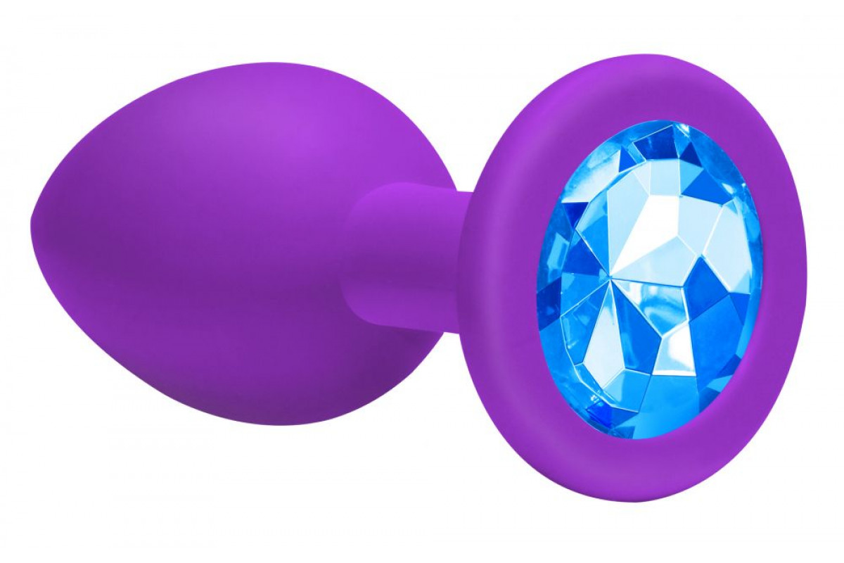 Большая фиолетовая анальная пробка Emotions Cutie Large с голубым кристаллом - 10 см.