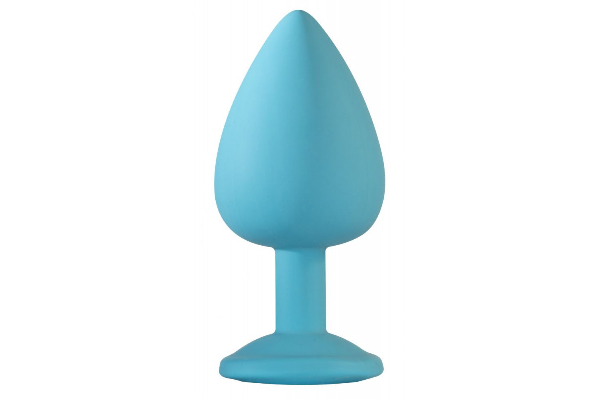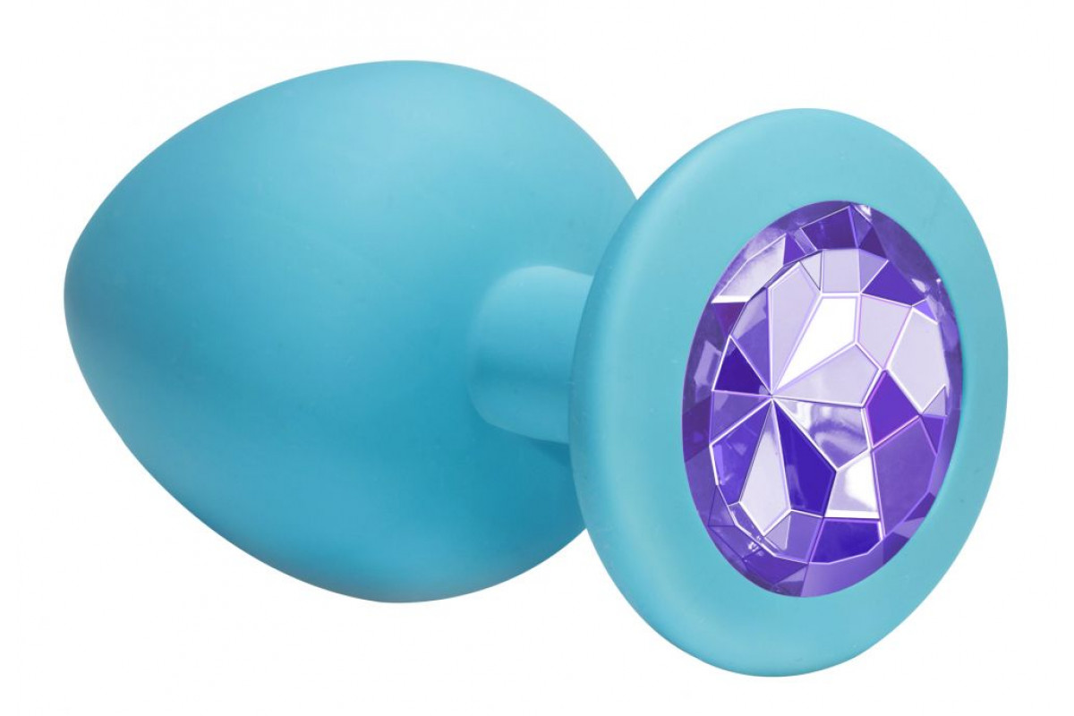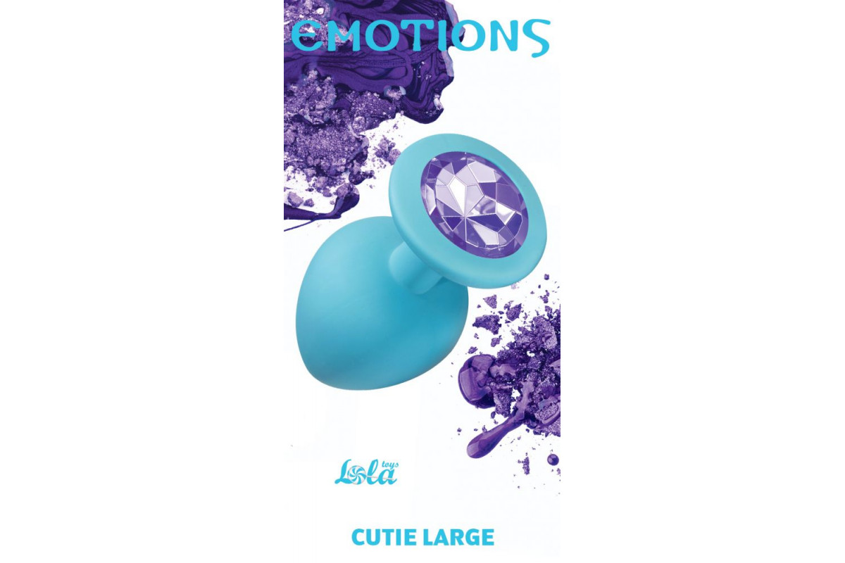 Большая голубая анальная пробка Emotions Cutie Large с фиолетовым кристаллом - 10 см.