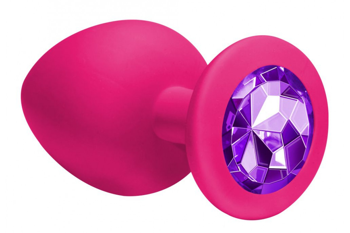 Большая розовая анальная пробка Emotions Cutie Large с фиолетовым кристаллом - 10 см.
