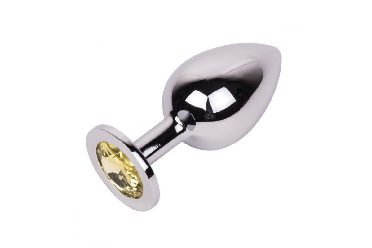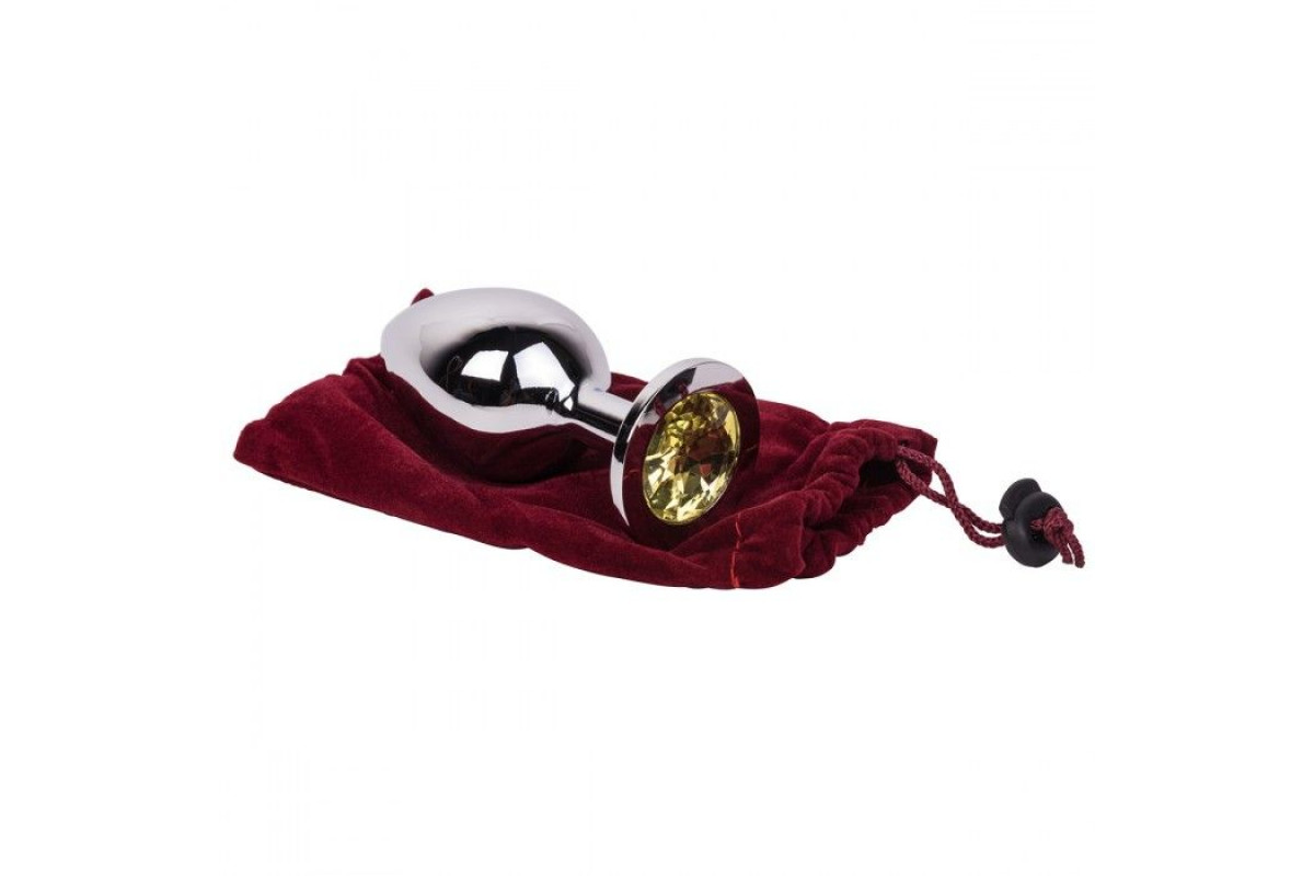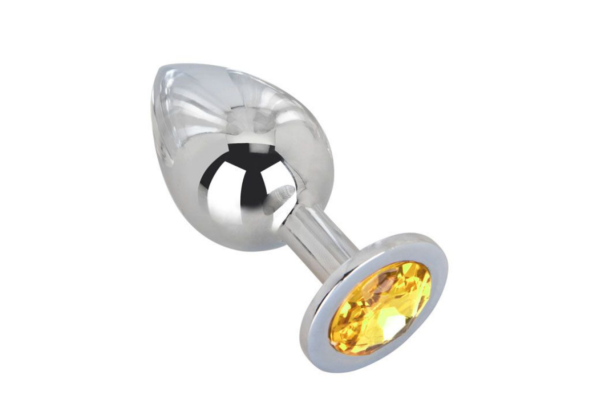Гладкий большой плаг из отполированной до блеска стали с кристаллом лимонного цвета в основании. Металл - материал с большой теплопроводностью, сначала он будет прохладным, но быстро нагреется до температуры Вашего тела. Стальные игрушки можно нагревать или охлаждать с помощью воды.