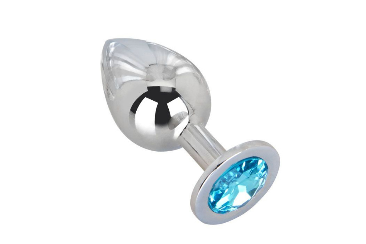 Гладкий большой плаг из отполированной до блеска стали с кристаллом небесно-голубого цвета в основании. Металл - материал с большой теплопроводностью, сначала он будет прохладным, но быстро нагреется до температуры вашего тела. Стальные игрушки можно нагревать или охлаждать с помощью воды.
