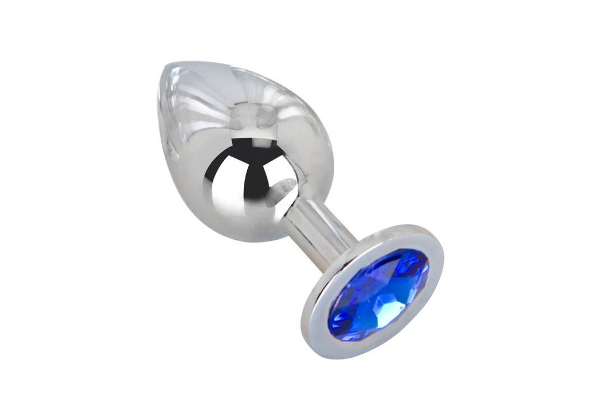 Гладкий большой плаг из отполированной до блеска стали с кристаллом темно-синего цвета в основании. Металл - материал с большой теплопроводностью, сначала он будет прохладным, но быстро нагреется до температуры вашего тела. Стальные игрушки можно нагревать или охлаждать с помощью воды.