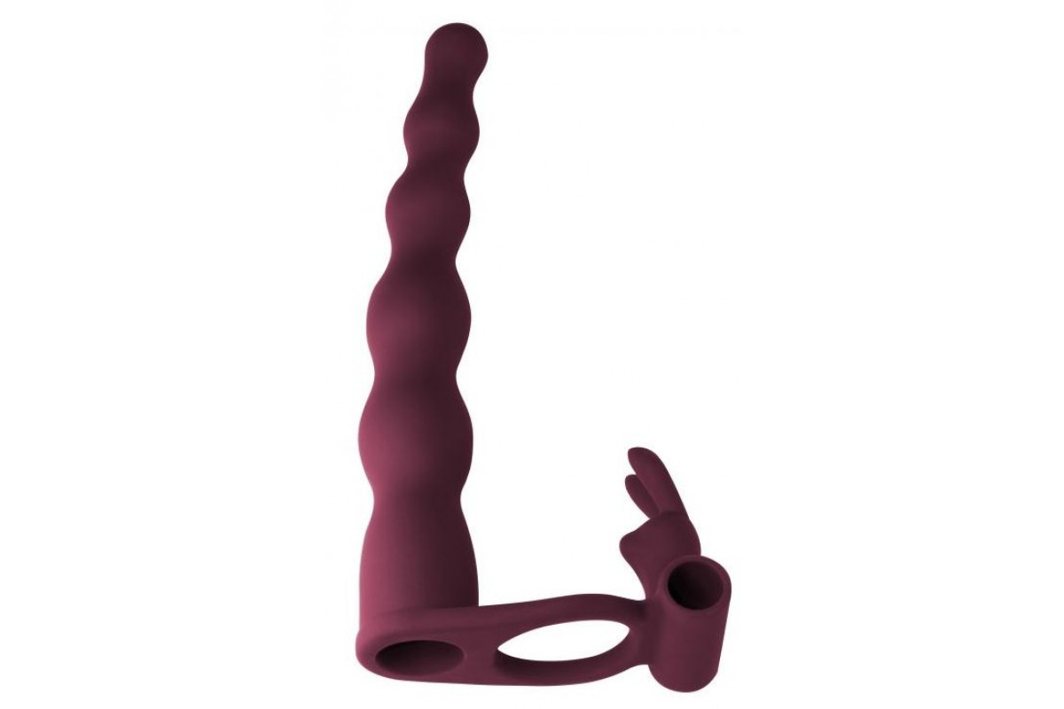 Бордовая вибронасадка для двойного проникновения Naughty Bunny - 17 см.