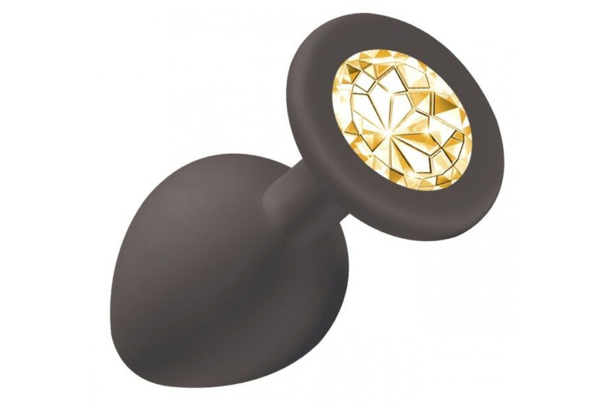Чёрная анальная пробка Emotions Cutie Medium с желтым кристаллом - 8,5 см.