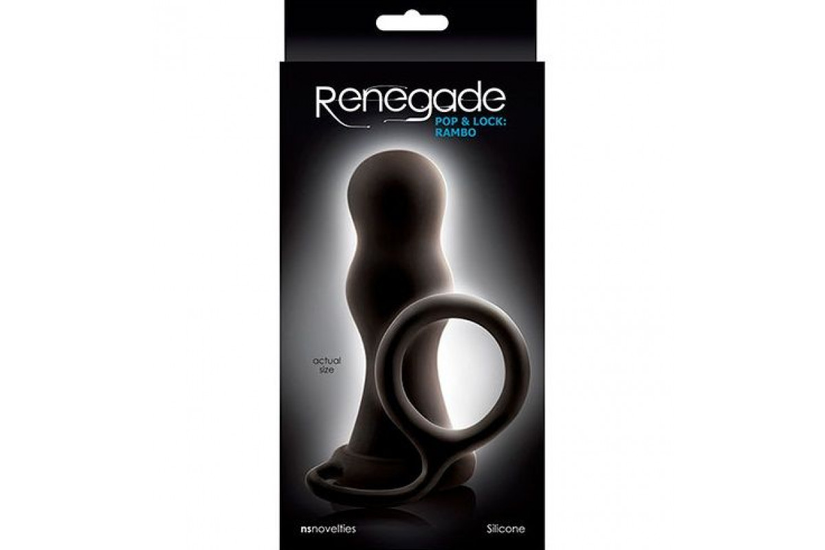 Черная анальная пробка с эрекционным кольцом Renegade Pop & Lock Rambo. Выполнена из нежного силикона, гибкая, гладкая поверхность для легкого скольжения.