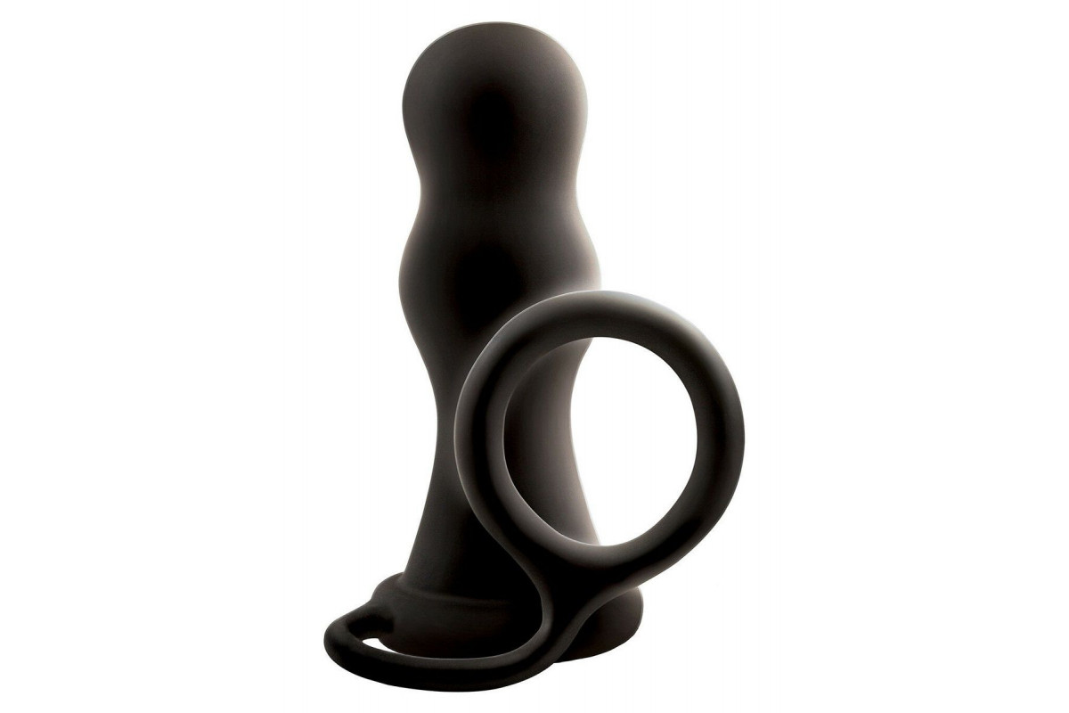 Черная анальная пробка с эрекционным кольцом Renegade Pop & Lock Rambo
