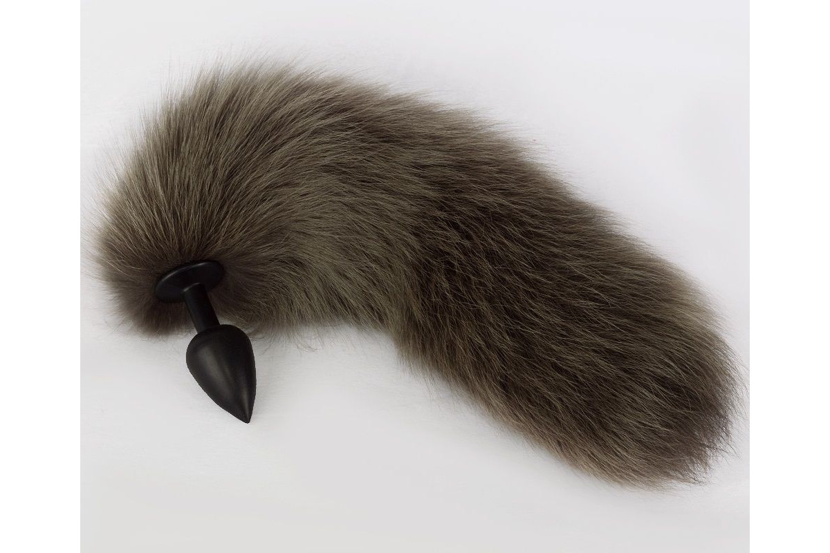 Черная анальная пробка с натуральным кофейным песцовым хвостиком — элегантное и возбуждающее решение для взрослых