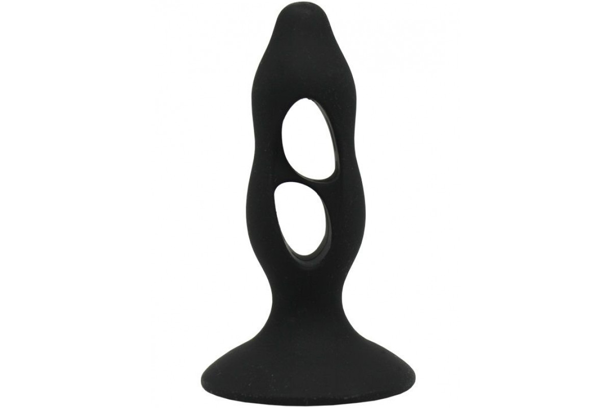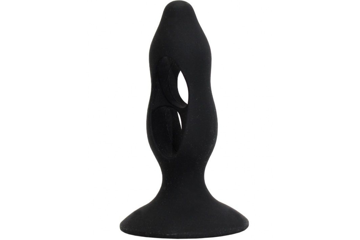 Чёрная анальная пробка с полостями для сжатия и легкого введения - 11 см.