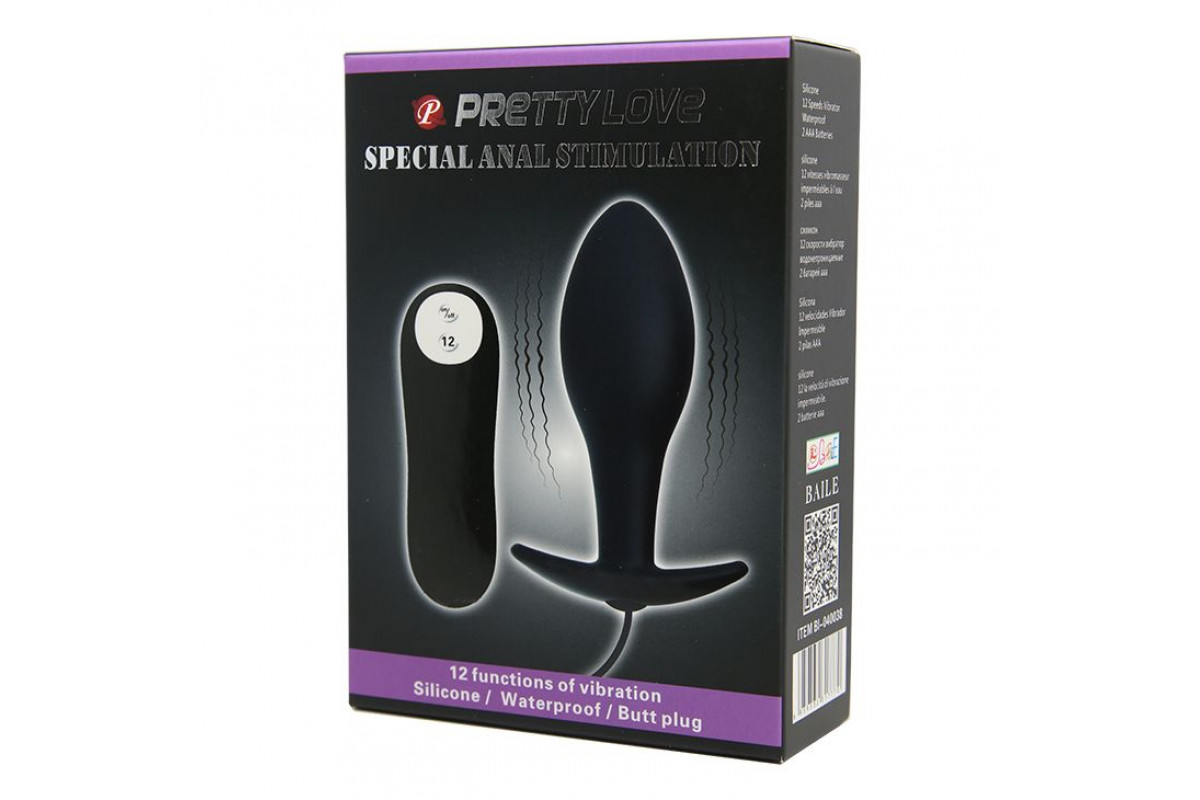 Анальная пробка, изготовленная из силикона. Имеет ограничительное основание для безопасного использования. Не имеет швов, гладкая и приятная на ощупь. 12 режимов вибрации.
