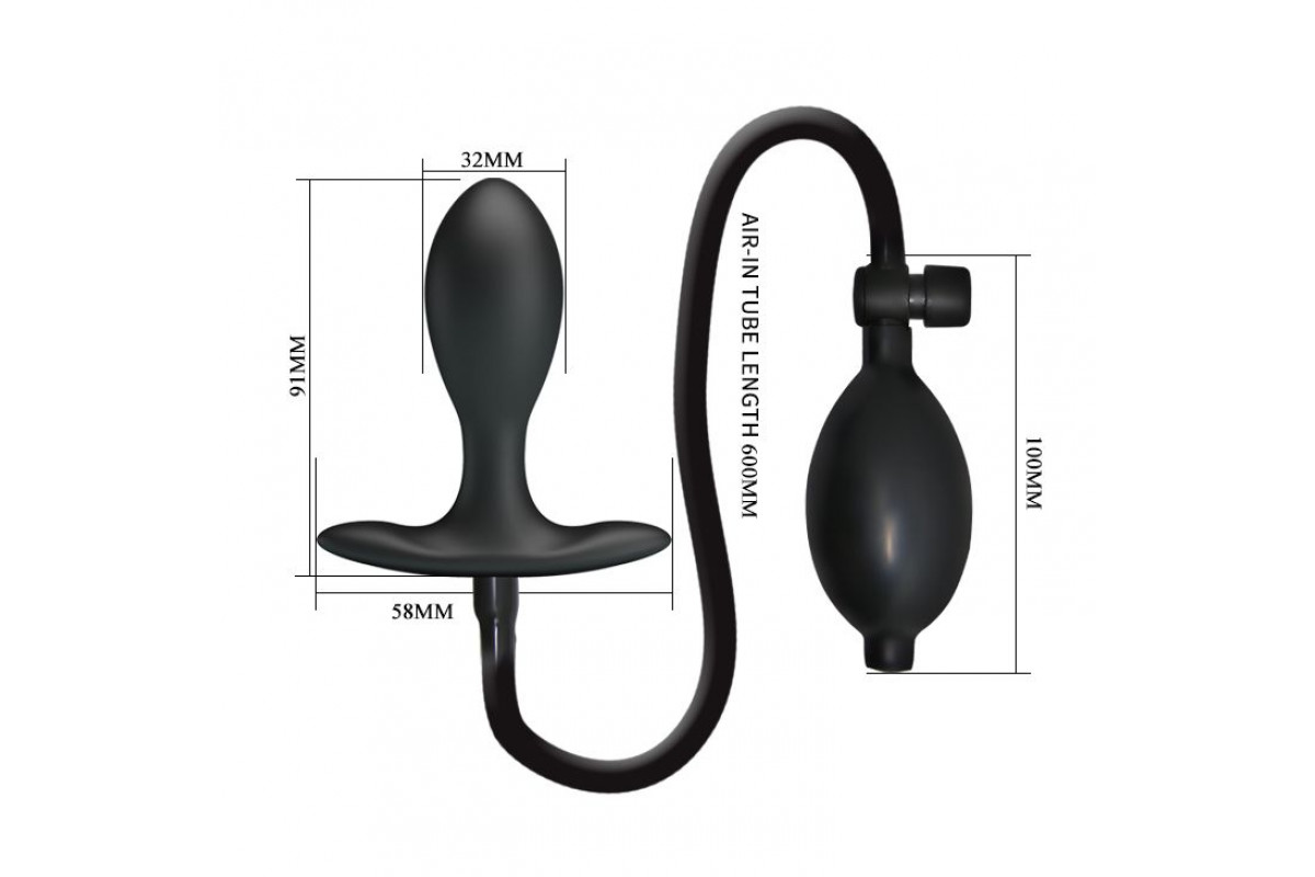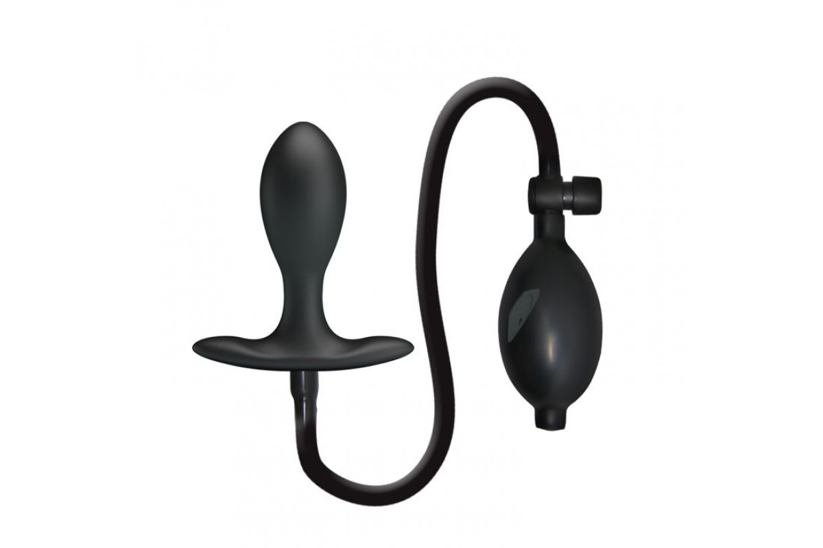 Черная анальная пробка с расширением. Выполнена из силикона. Воздух нагнетается грушей с клапаном сброса.