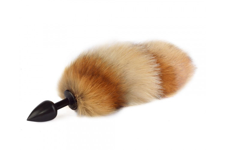 Черная анальная пробка из TPE с рыжим лисьим хвостом (натуральный мех). Длина хвостика - 20-25 см.
