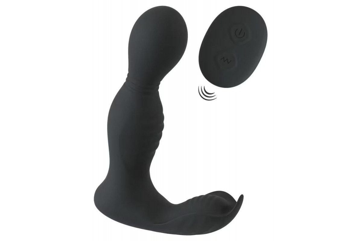 Черная анальная пробка с вибрацией, вращением и пультом ДУ RC Butt Plug with 2 Functions