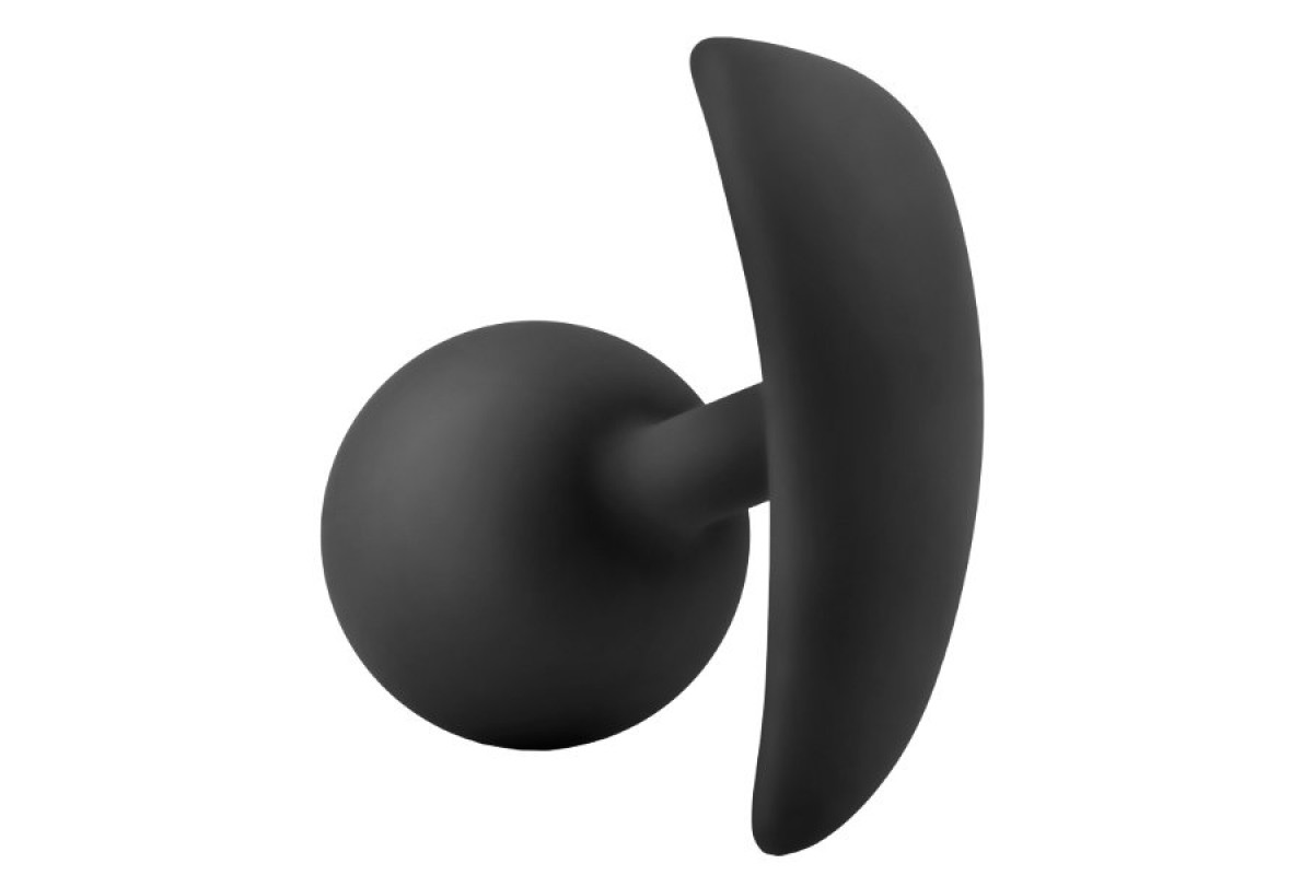 Черная анальная пробка Silicone Vibra Plug. Выполнена в форме шарика на шейке, со смещенным центром тяжести. Рабочая длина - 7,6 см.
