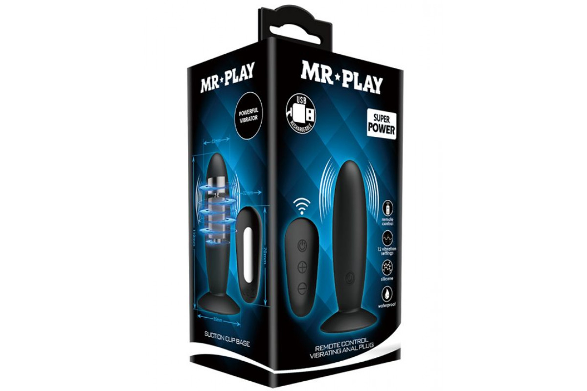 Черная анальная вибропробка Mr.Play с пультом - 11 см.