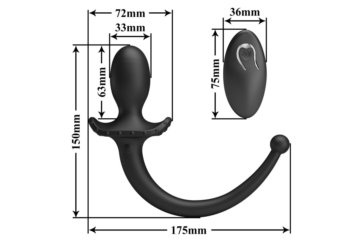 Какие точные размеры у товара Черная анальная вибропробка с хвостом и пультом ДУ и кому он подойдёт?