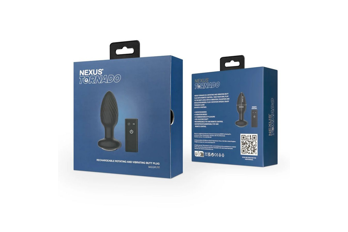 Nexus Tornado — это вращающаяся и вибрирующая анальная пробка с дистанционным управлением. Поднимите свою игру на новый уровень. В арсенале втулки 6 режимов вибрации, пульсации и усиления, а также 3 скорости вращения. Благодаря небольшому размеру она отлично подходит для новичков или для тех, кто хочет получить больше удовольствия и интересных ощущений от ротации. Пульт дистанционного управления работает на расстоянии до 8 метров, так что вы сможете наслаждаться Tornado в одиночку или с партнёром. Эта перезаряжаемая игрушка изготовлена из силикона высокого качества, а ее корпус полностью водонепроницаем и отлично подходит для игр в ванной или душе. Рабочая длина - 8,7 см.