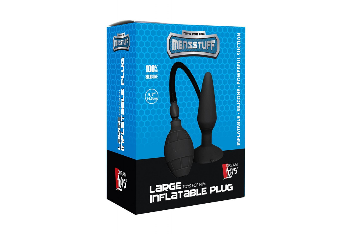 Чёрная анальная втулка с функцией расширения Large Inflatable Plug. Присоска в основании. Максимальный диаметр - 10 см.
