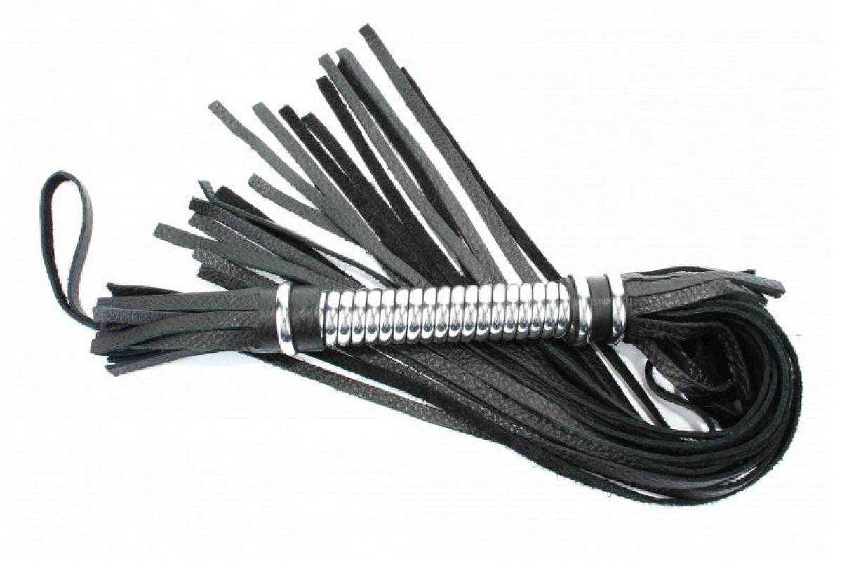 Черная длинная плеть с серебристой ручкой - 60 см.