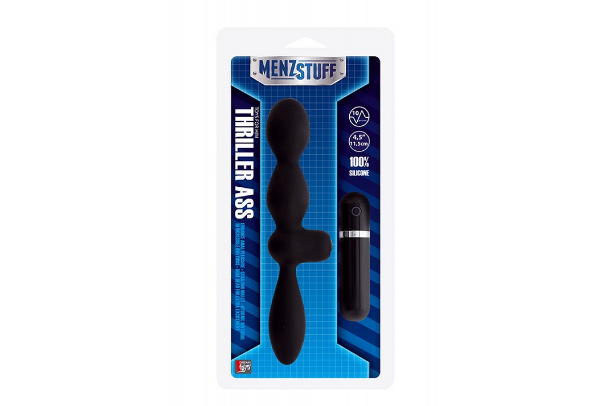 Чёрная двусторонняя вибровтулка MENZSTUFF THRILLER ASS DUAL HEAD
