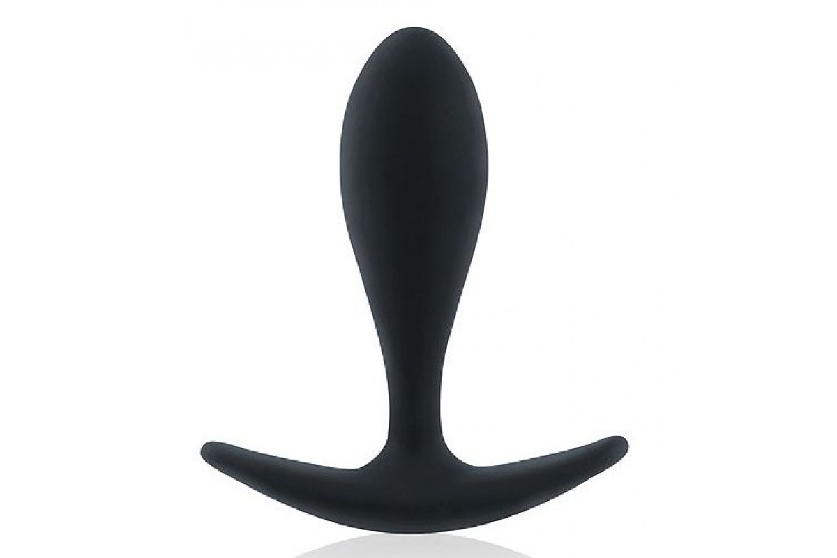 Черная гладкая анальная пробка с ограничительным основанием - 7,4 см.
