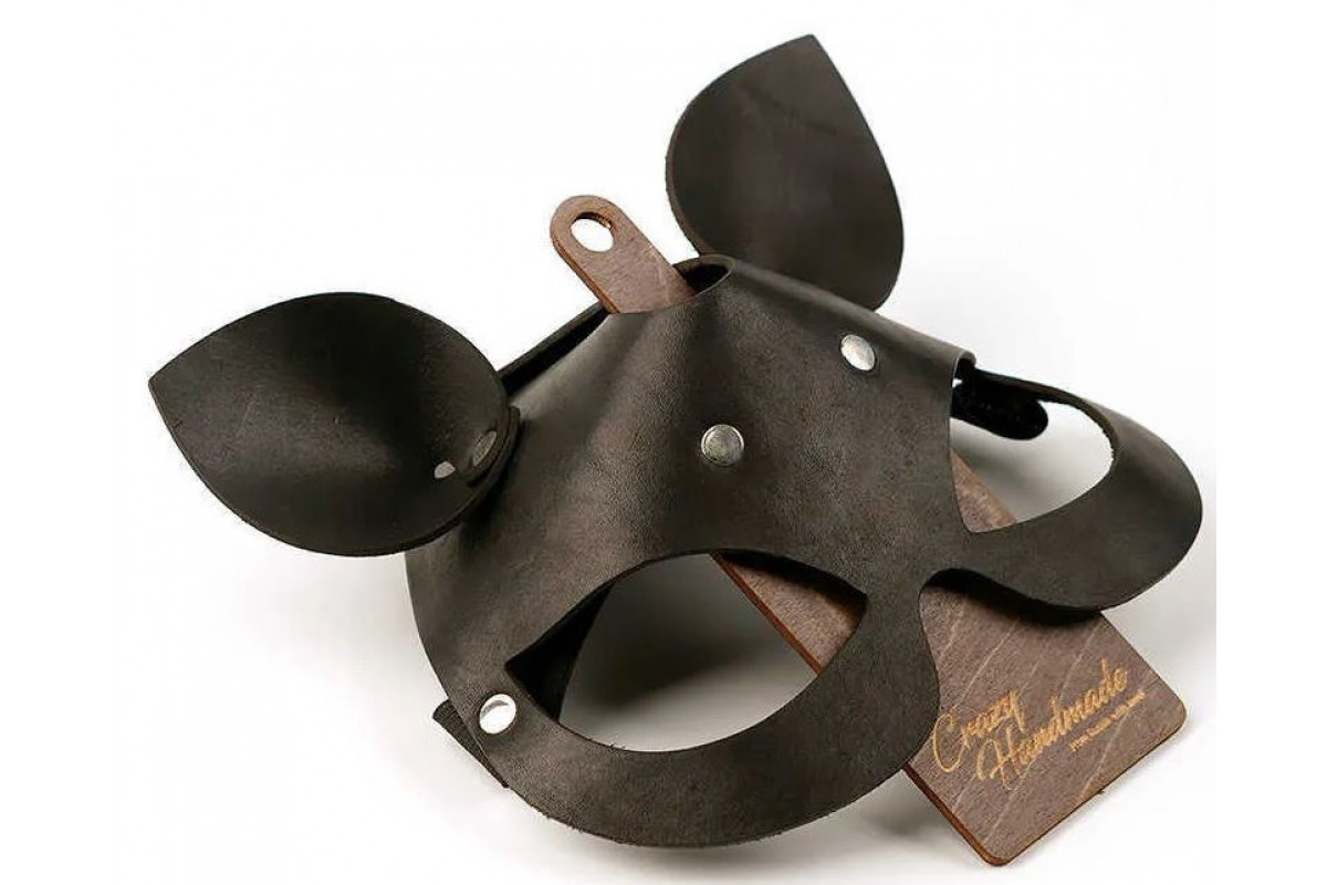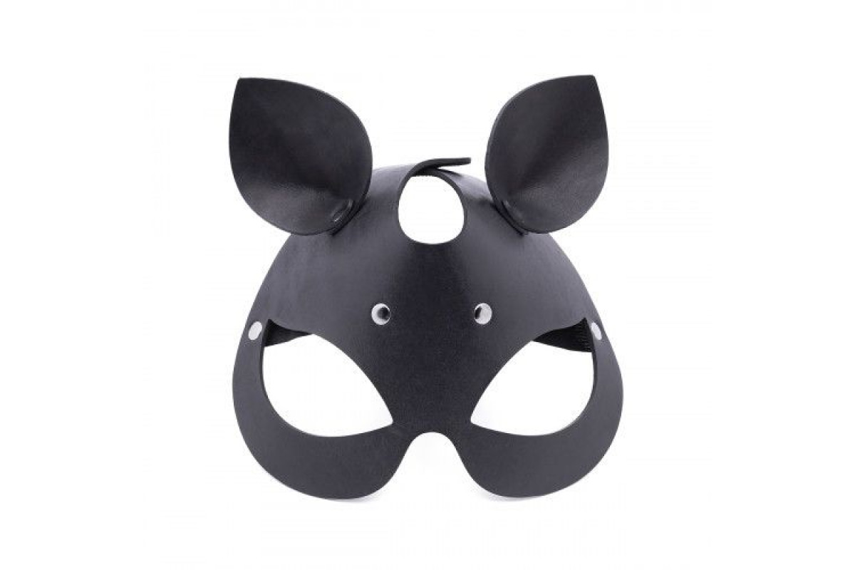 Черная кожаная маска Кошка с маленькими ушками — стильное и загадочное дополнение для взрослых