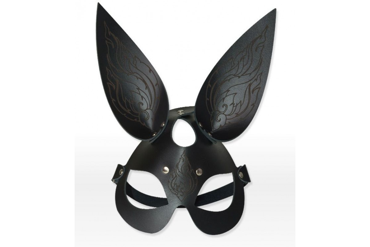 Элегантная чёрная кожаная маска с длинными ушками и эффектом тату