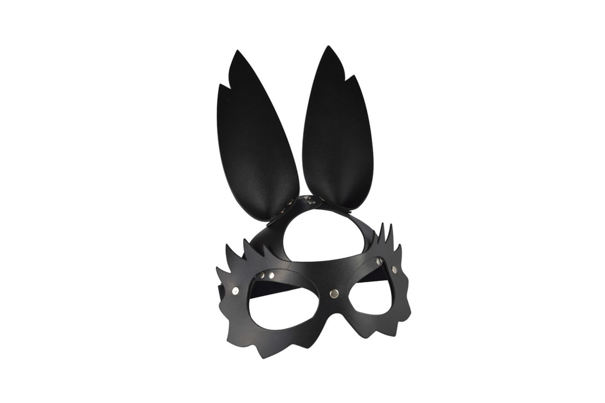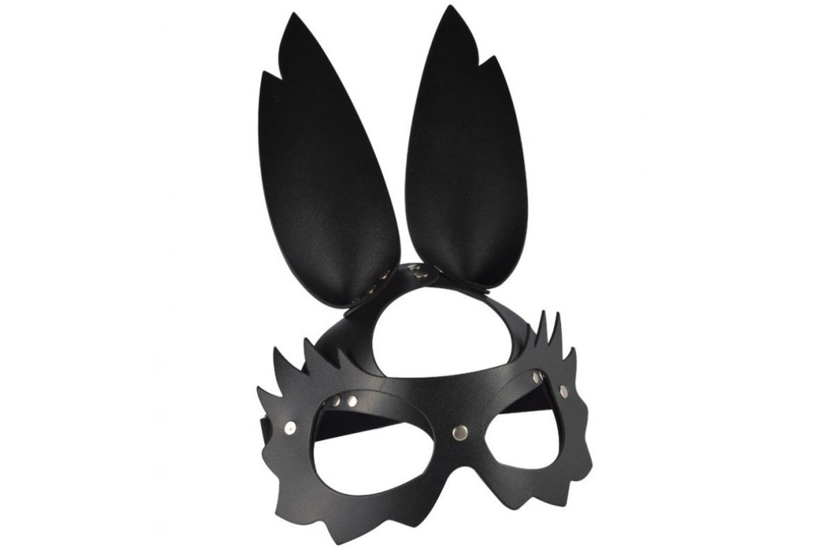 Черная кожаная маска Зайка с длинными ушками – стильное и загадочное украшение для взрослых