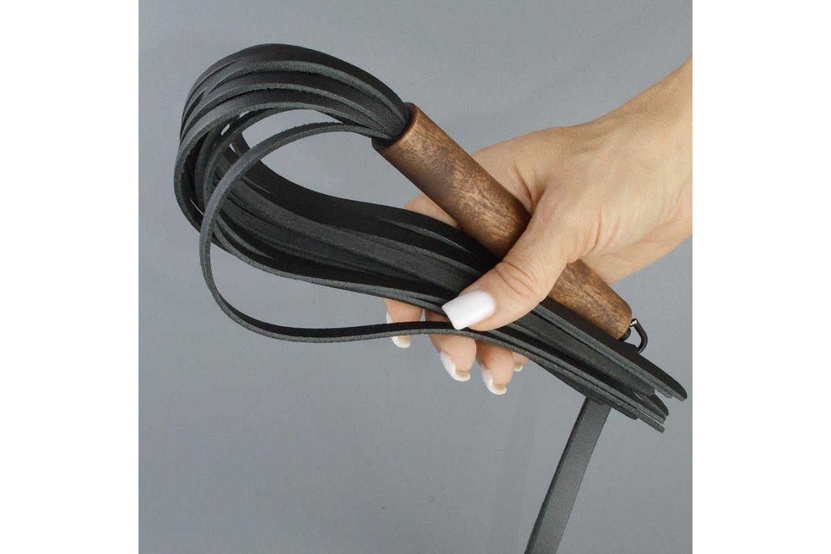 Черная кожаная плеть с деревянной рукоятью – 44 см